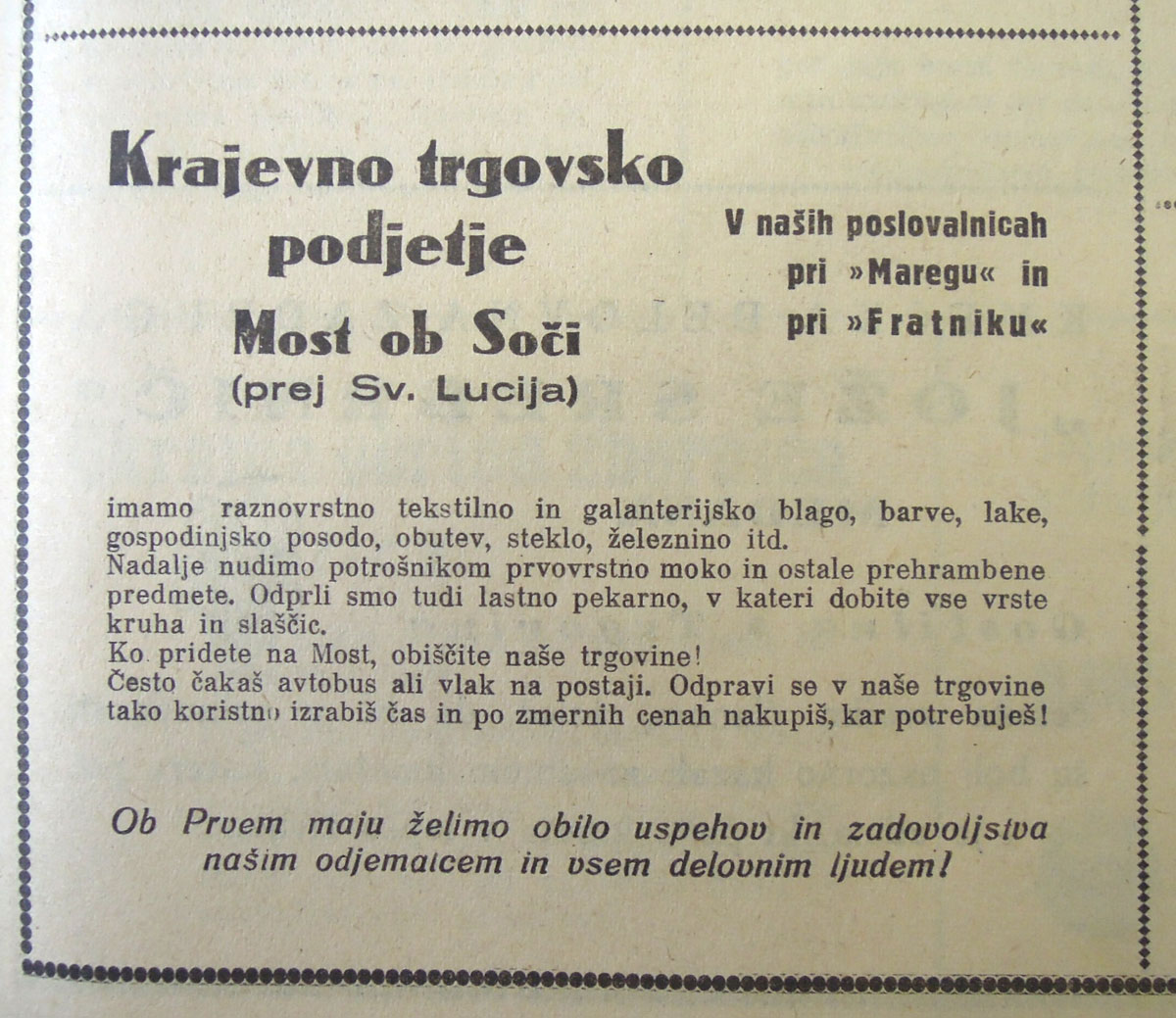 Poročilo Okrajne trgovske zbornice Tolmin za leto 1953
