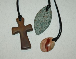 Z obeskom iz brušenega obsoškega kamna.