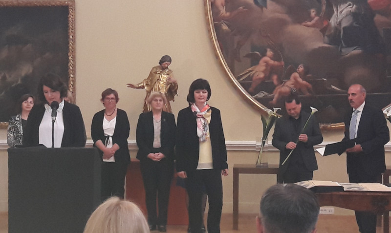 Tolminski muzej je bil včeraj v središču pozornosti. Mag. Damjana Fortunat Černilogar je prejela Valvasorjevo nagrado za enkratne dosežke, najvišje stanovsko priznanje za posebne dosežke v muzejstvu.