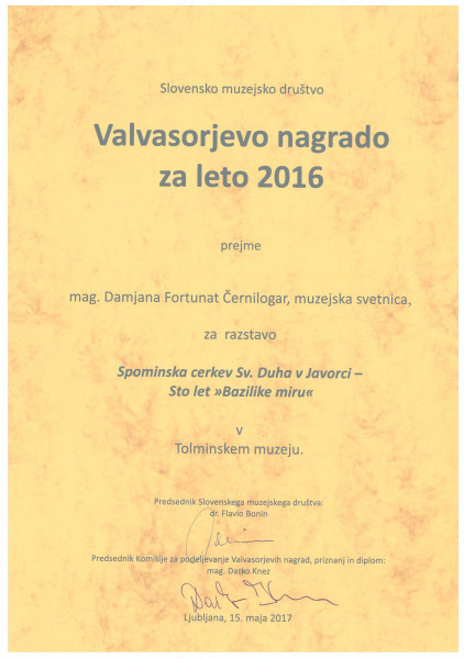 Valvasorjeva nagrada ponovno v Tolminski muzej